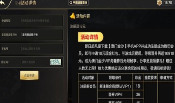 活动详情:新用户注册完善资料活动里自助申请18无游戏限制,最低100提现