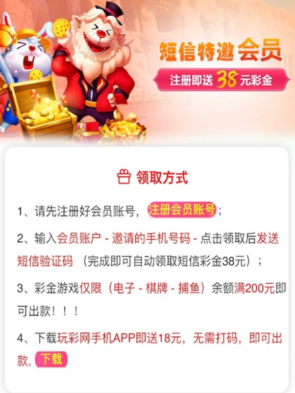 活动详情:注册完善信息领取38彩金;下载app送18彩金