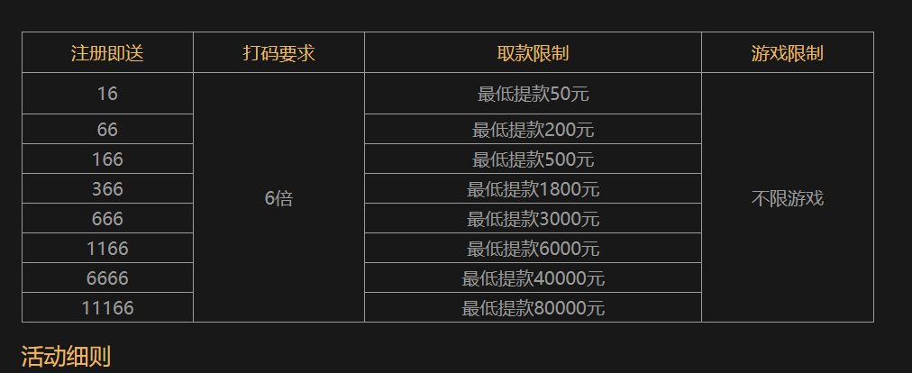 活动详情:注册发送短信最低送16彩金/6倍水,下载app另送38