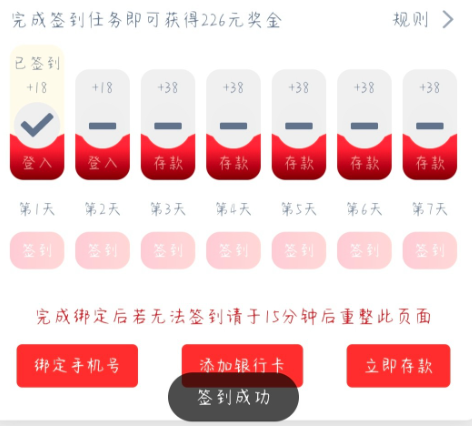 活动详情:注册绑定手机号银行卡,签到送18彩金要等审核,通过就到彩金钱包,现在不用充值可以签到,提现自测