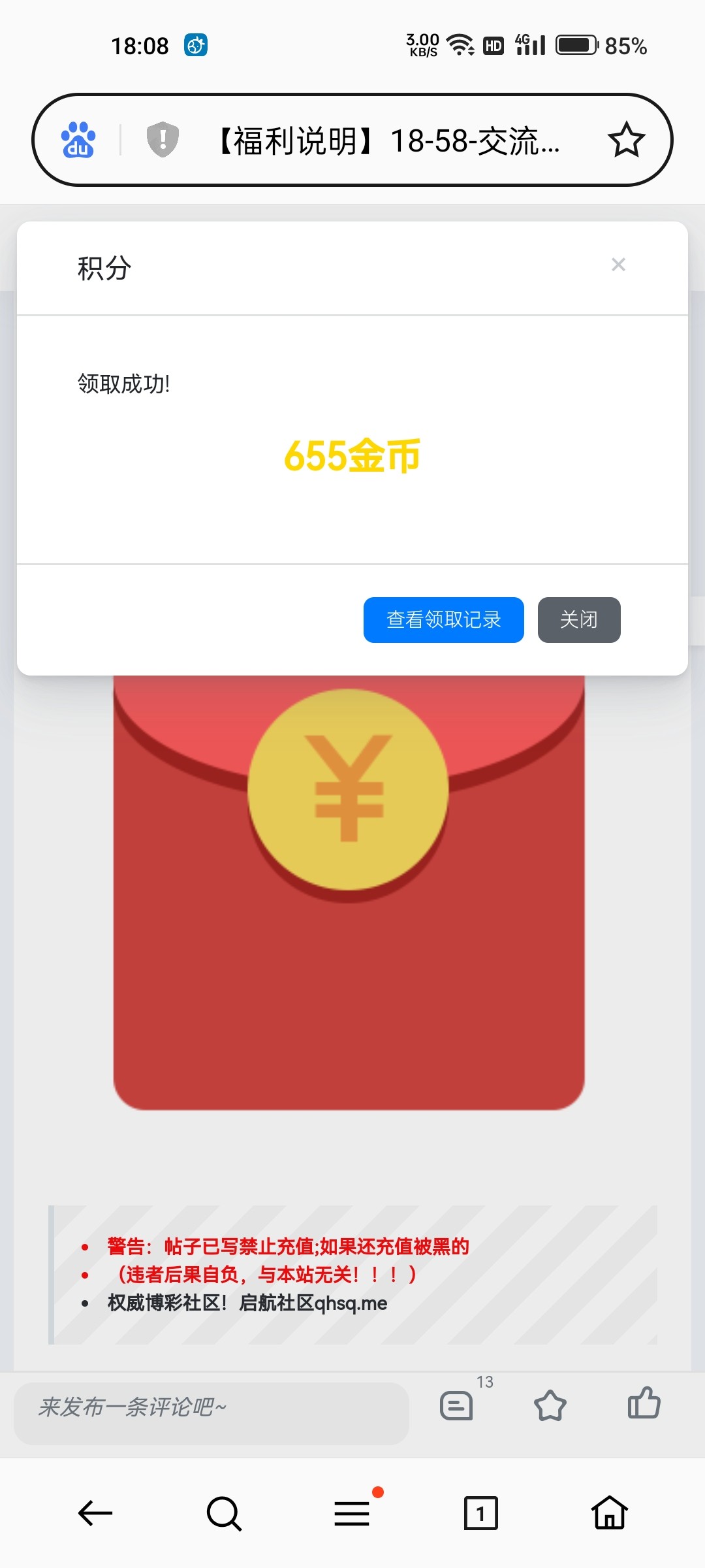(记得也要在帖子下面留言 截图+金额)