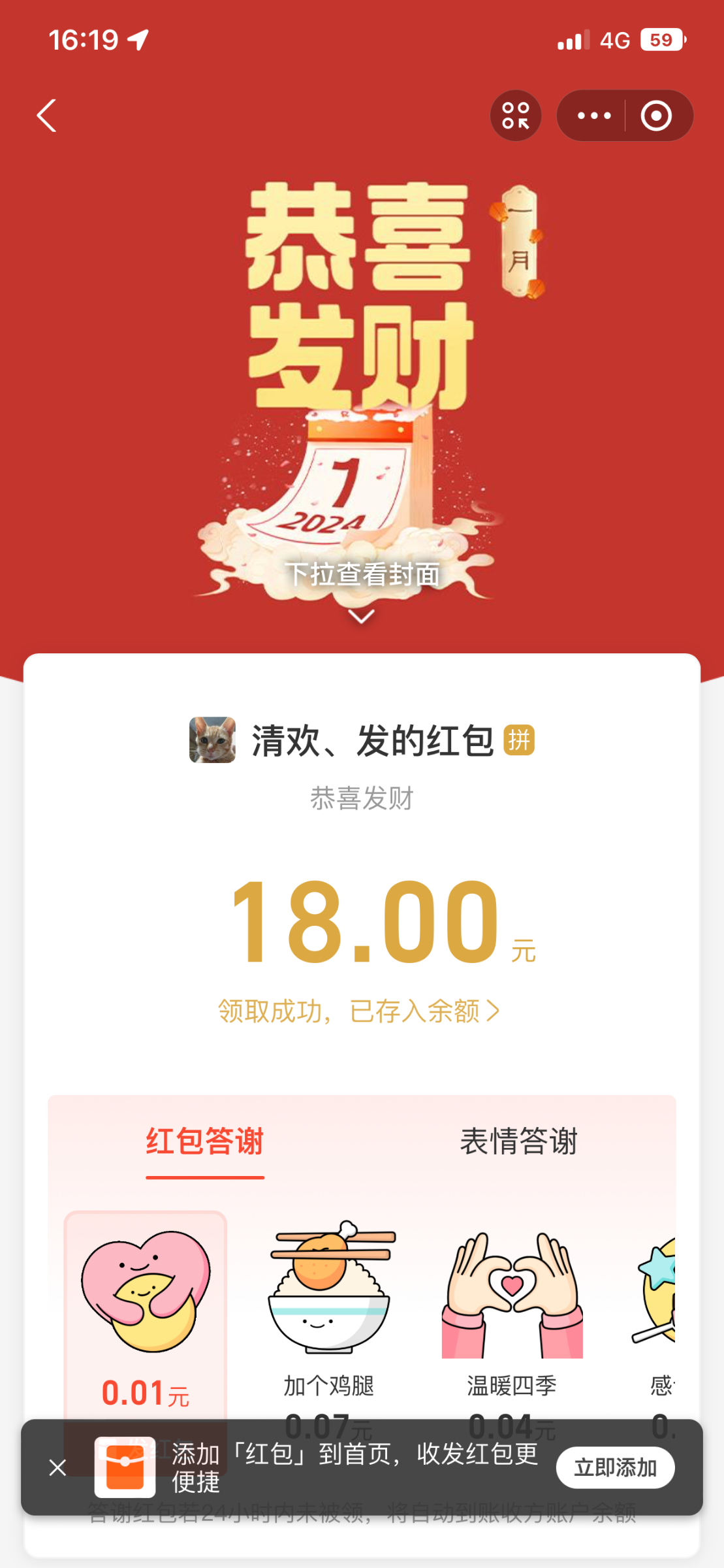 这次会在领取红包截图评论的用户里抽5个18,3个28,1个38,1个58口令。