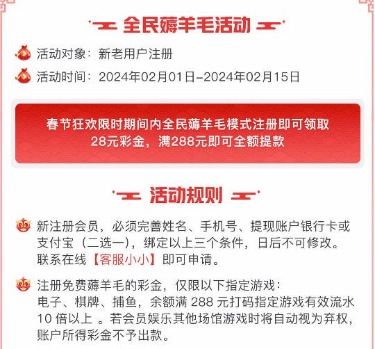 2024新年 全民薅羊毛 - 联系客服小小申请秒28