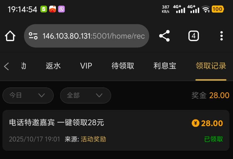 活动详情:下午接到电话说送28 但是去注册的时候发现已经注册过了,我就登录老号把另一个手机号换绑过去,重新注册了个新号绑定特邀手机号就领取成功了,你们有漏接电话的 或者想碰瓷的 可以去试试。