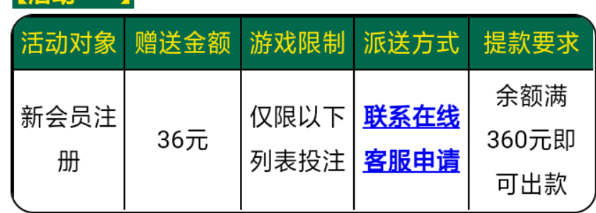 活动详情:新用户注册完善个人信息即可联系在线客服申请36彩金   满360元即可提现!!!
